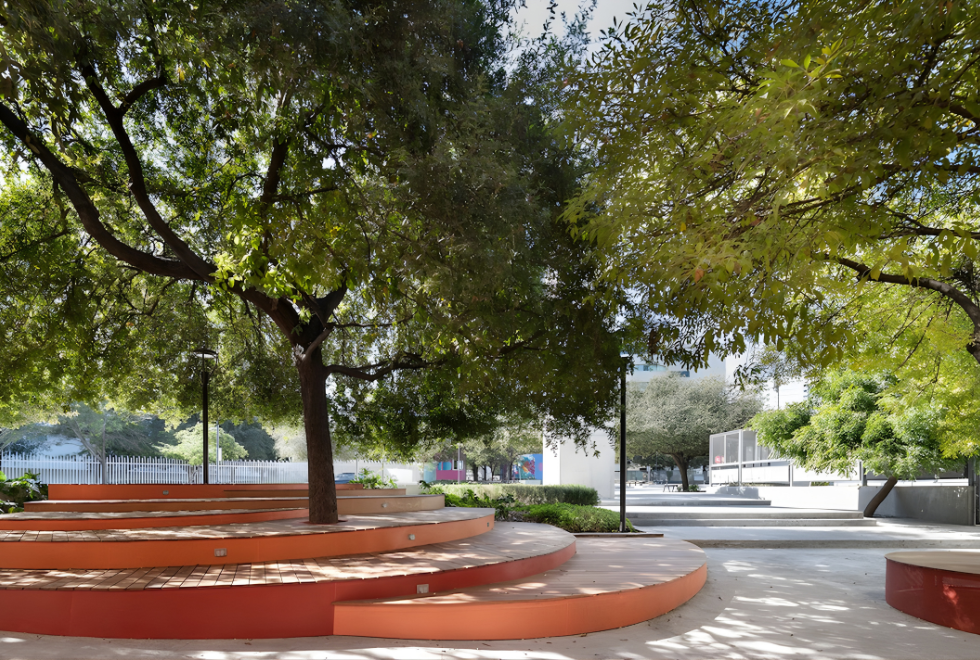 La Plaza Arizona es una intervención urbana que activa el espacio público frente al histórico Edificio Arizona del Tec de Monterrey, consolidándose como punto de encuentro para la comunidad.
